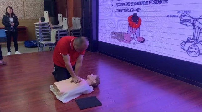 In order to further to enhance the health awareness of employers, popularize the first aid-related knowledge and skills, and improve the competency of help each other in an emergency. On the afternoon of October 13th, the outpatient department of IWHR organized the first aid knowledge training in the north campus and more than 40 employers from BIC participated in this training. This training invited the professional lecturer from the Training Center of the Red Cross Society of China to give lectures. The training includes two parts: theoretical teaching and on-site simulation. In the theoretical teaching session, it focused on the first aid process, the steps and essentials of the CPR (cardio-pulmonary resuscitation), the application method of AED (automated external defibrillator), and first aid skills of Heimlich Maneuver.